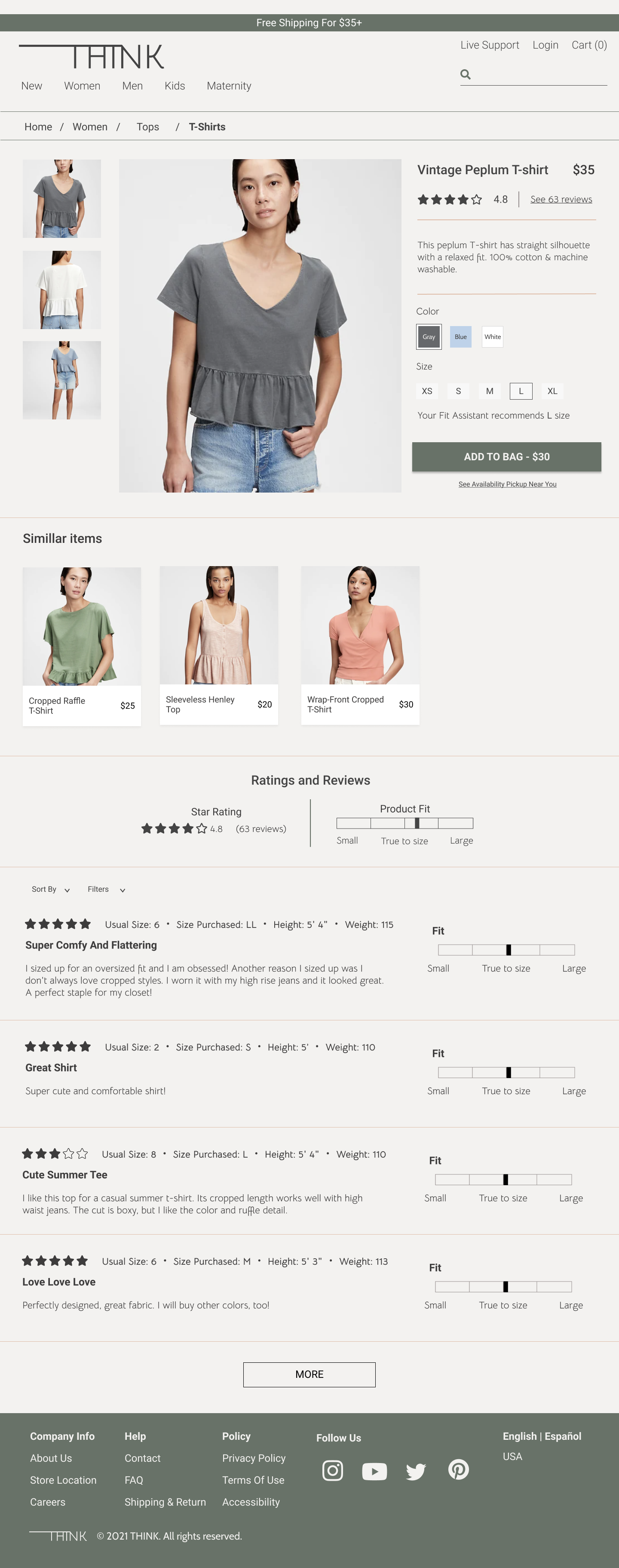 After some usability testings, I finalized the hi-fi prototype as below. All participants could complete a main task (add a peplum T-shirt to a shopping bag).